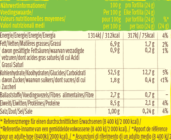 Alle Old El Paso™ Produkte können zu jeder Zeit überarbeitet werden. Wir empfehlen daher vor dem Kauf immer die Zutatenliste auf der Produktverpackung zu überprüfen, um die genaue Zusammensetzung zu ermitteln.