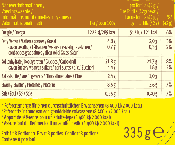 Tous les produits Old El Paso™ peuvent être modifiés à tout moment. Nous recommandons donc de toujours vérifier la liste des ingrédients sur les emballages de nos produits avant de les acheter, afin d’en déterminer le contenu précis.